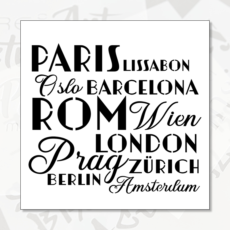 Schablone «Städte Europa» für Acryl & Mixed Media